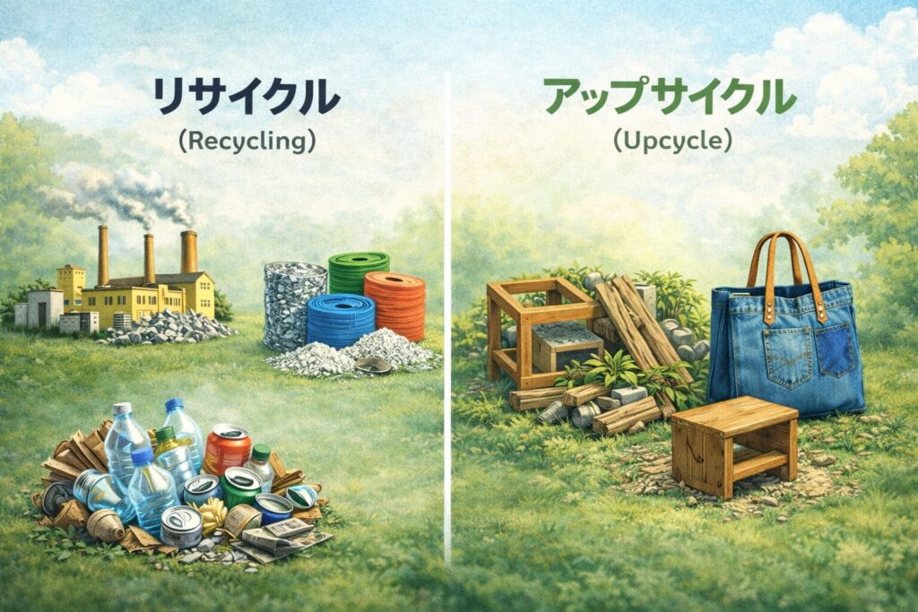 リサイクルとは異なり、素材の特徴を活かしながら価値を高めることが特徴です。