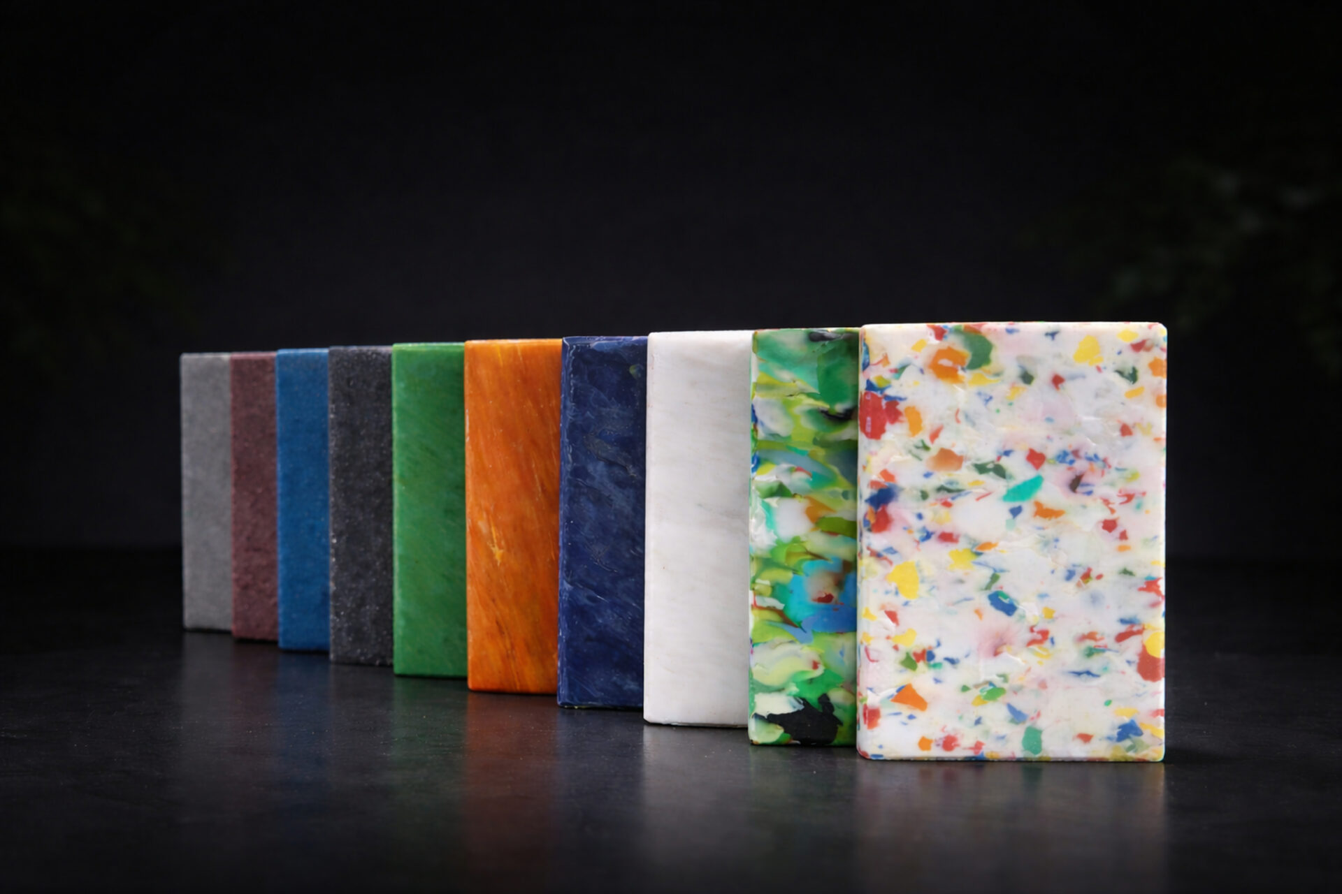 そうした現状の中で、私たちはベトナムで回収された家庭由来の廃プラスチックが、新たな板材として再生されている取り組みに出会いました。丁寧に選別・再生されたその素材は、廃棄物でありながら、製品として成立する可能性を強く感じさせるものでした。