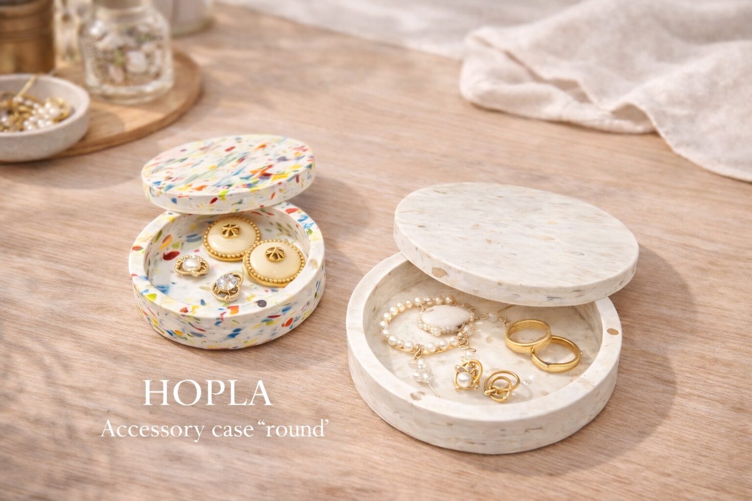 弊社では、“ごみから新しい価値を生み出す”という考え方を軸に、サステナブルブランド 「HOPLA(ホプラ)」 を企画・製造・販売しています。廃棄されるはずだったプラスチックを原料として再設計し、素材としての個性や表情を活かしながら、家具や雑貨、什器、内装材など、実際に使われ続けるプロダクトへと生まれ変わらせています。