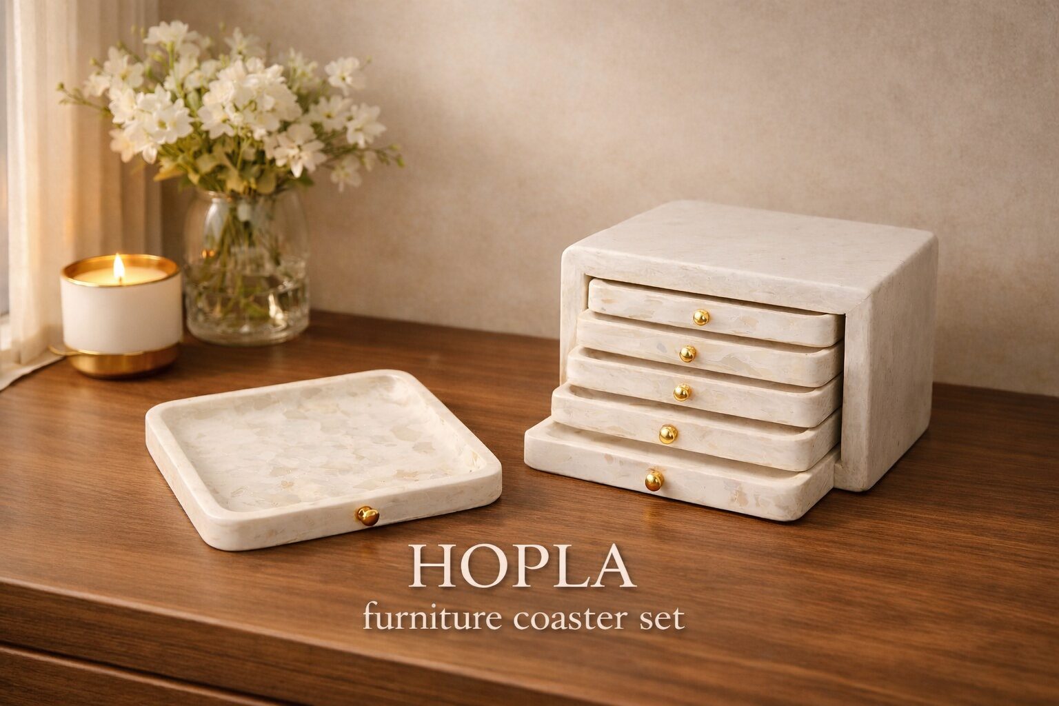 大理石調の質感が引き立てる、上質なディスプレイトレイ。